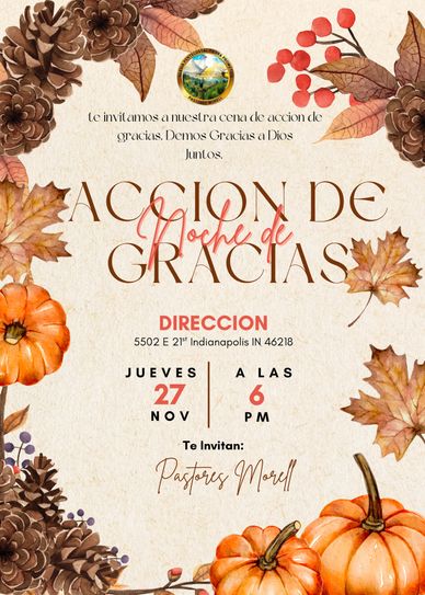 TENDREMOS NUESTRA CENA DE ACCION DE GRACIAS EN NUESTRA IGLESIA , TE INVITAMOS A QUE TU Y TU FAMILIA SE UNAN CON NOSOTROS EN ESTA NOCHE DE AGRADECIMIENTO A DIOS POR LO MUCHO QUE NOS A DADO .